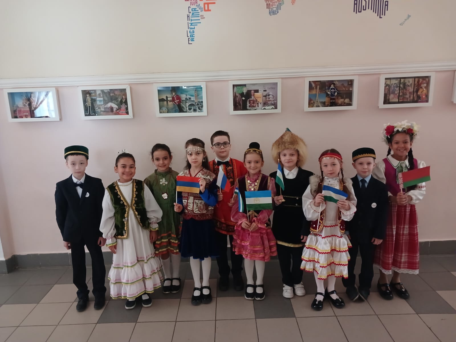 Учителя в гимназии провели увлекательные тематические уроки, посвященные истории и особенностям национального костюма, первоклассники разукрашивали раскраски в национальных костюмах. Гимназисты активно участвовали в акции “Я учусь в национальком костюме”. Учащиеся 8В класса посетили музей им. С.Аксакова. Кульминацией дня стал яркий и красочный парад костюмов, в котором приняли участие ученики и учителя.
