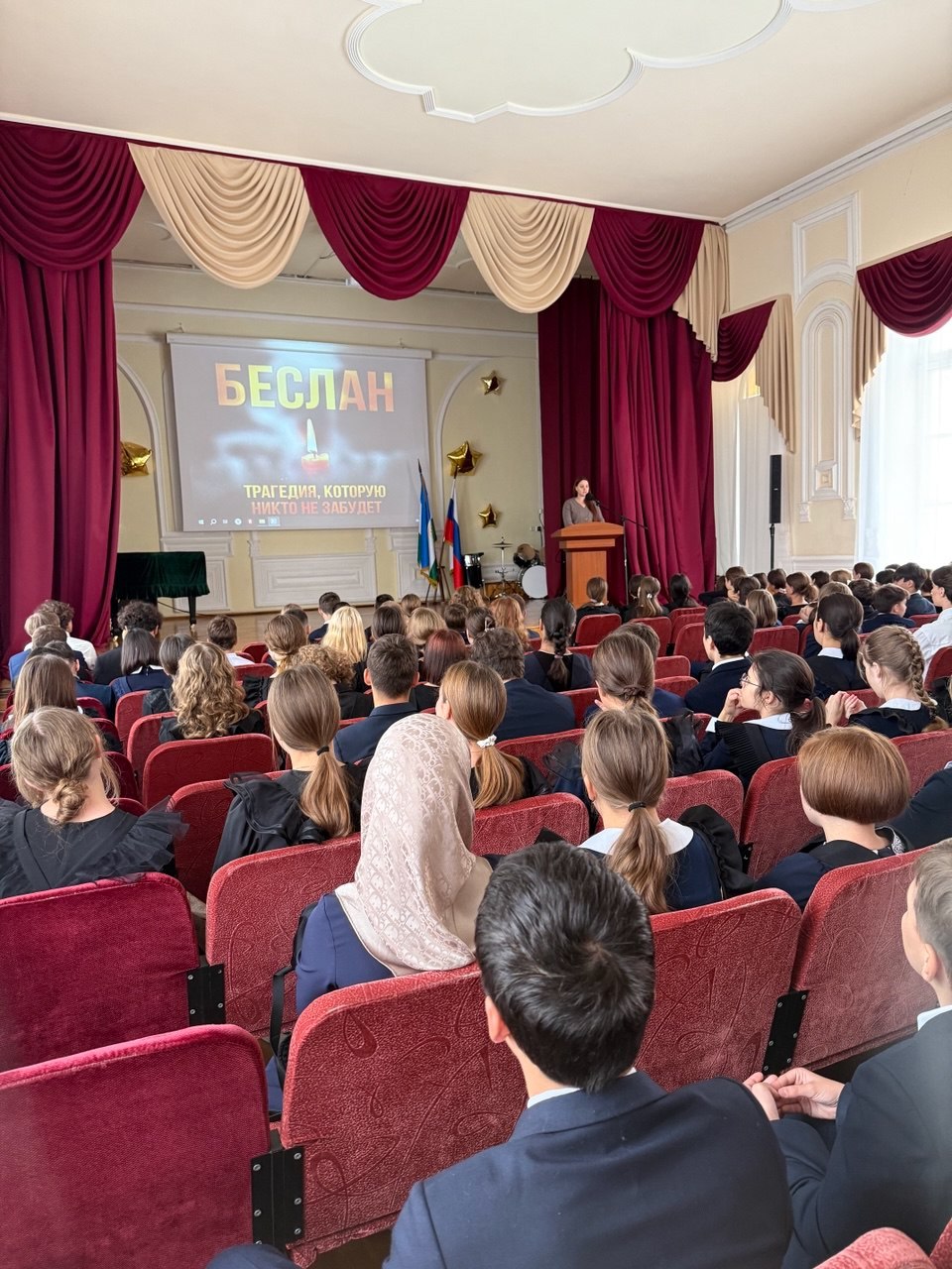 Сегодня, 3 сентября, Россия отмечает «День солидарности в борьбе с терроризмом». Эта дата навсегда связана с трагическими событиями, произошедшими в Беслане в 2004 году, когда террористы захватили школу, взяв в заложники сотни детей и взрослых. Память о жертвах этого чудовищного акта насилия живет в наших сердцах, напоминая о хрупкости мира и необходимости объединения усилий в противостоянии злу. В честь этого скорбного дня в МАОУ «Гимназия 3» прошел кинолекторий, посвященный памяти жертв Беслана. Учащиеся 8-х классов стали свидетелями пронзительного документального фильма «Граждане Беслана». Этот фильм – не просто хроника событий, это глубокое погружение в историю людей, оказавшихся в эпицентре трагедии. Он показал нам не только ужас и страдания, но и невероятную силу духа, мужество и самоотверженность тех, кто боролся за жизнь, и тех, кто пришел на помощь. После просмотра фильма, ребята смогли обсудить увиденное, поделиться своими эмоциями и размышлениями. Важно, чтобы молодое поколение понимало, что такое терроризм, какие разрушительные последствия он несет, и почему так важно быть бдительными и солидарными в борьбе с этим явным врагом человечества. Учитель истории Билалов Р.М. провел уроки, посвященные этой дате, где обсудил с учениками важность памяти о трагедиях прошлого и необходимость борьбы с терроризмом. Уроки сыграли большую роль не только образовательном процессе, но и помогли учащимся осознать, как важно сохранять мир и безопасность в нашем обществе. #Росдетцентр #НавигаторыДетства #оДнеСолидарностиНД#НавигаторыДетстваРБ.