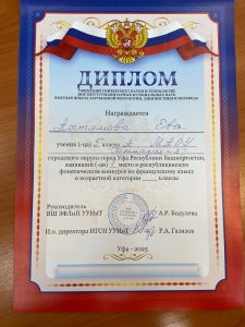 Конкурс по французскому языку среди учащихся школ и гимназий Республики Башкортостан, посвящённый 80-летию Великой Победы, состоялся 14 апреля 2025 года в Высшей школе зарубежной филологии, лингвистики и перевода УУНиТ.
