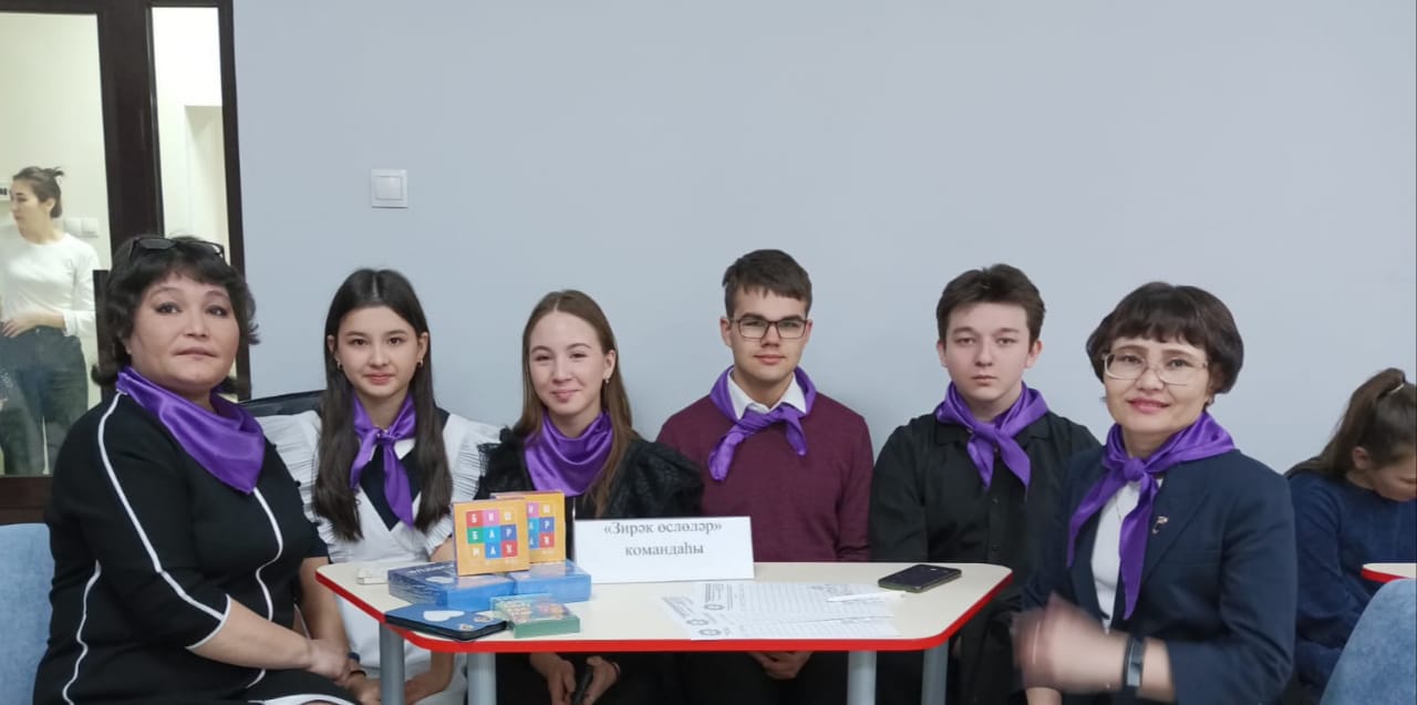 Сегодня команда учителей и учащихся нашей гимназии “Зирәк өсөнсөләр” блестяще выступили в интеллектуальной игре “Әлләсе” и заняла 1 место! Организатором игры является “Фонд по сохранению и развитию башкирского языка”.