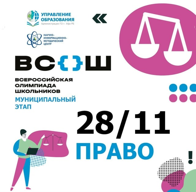 ❗28 ноября в Лицее №123, Лицее № 60 им. М.А. Ферина, Школе № 9, Гимназии №91, Школе № 97, Центре образования № 76, Школе № 100 проходит муниципальный этап всероссийской олимпиады школьников по праву.