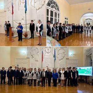 Новая учебная неделя в гимназии началась с торжественной линейки и поднятия флагов Российской Федерации и Республики Башкортостан.