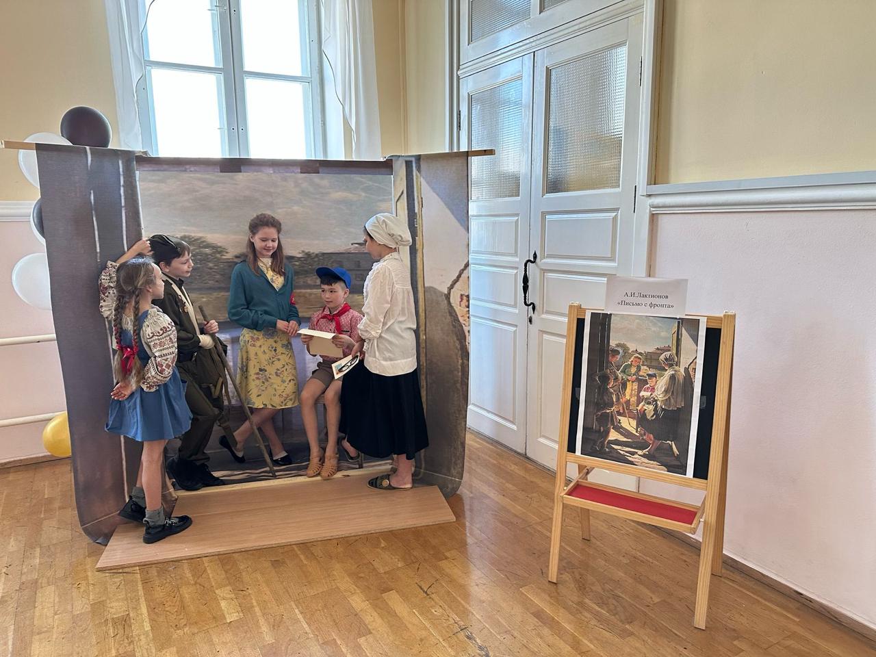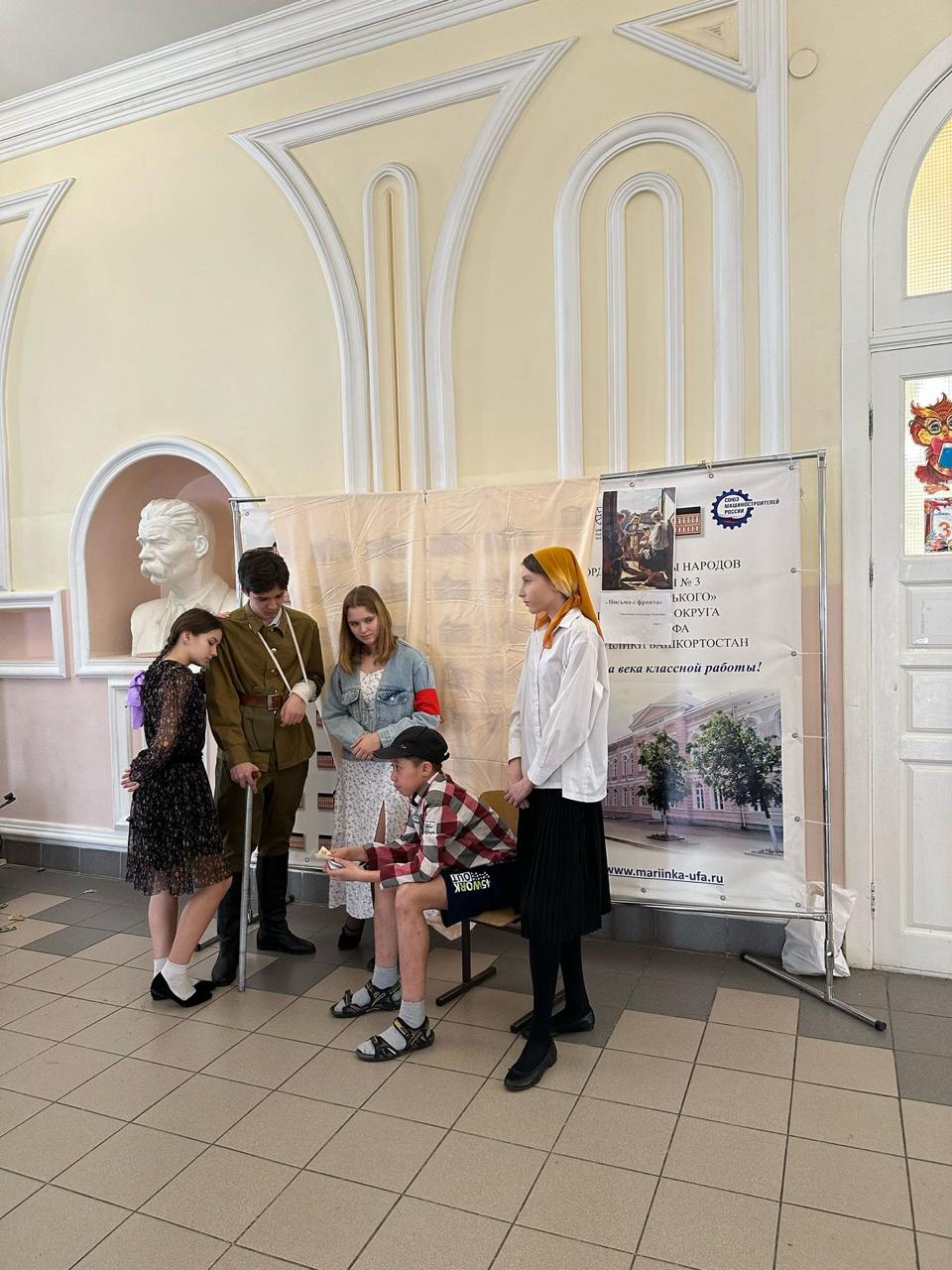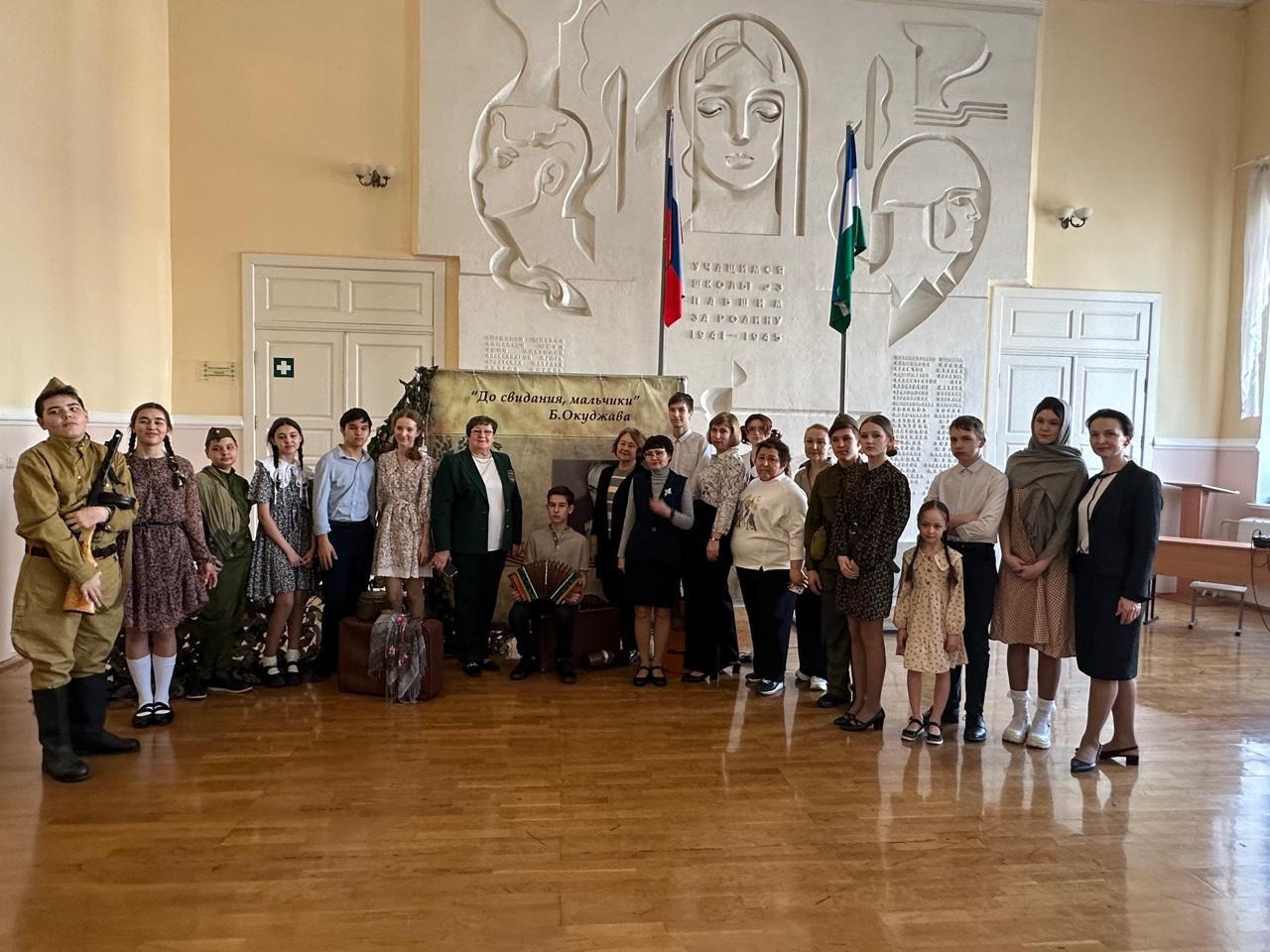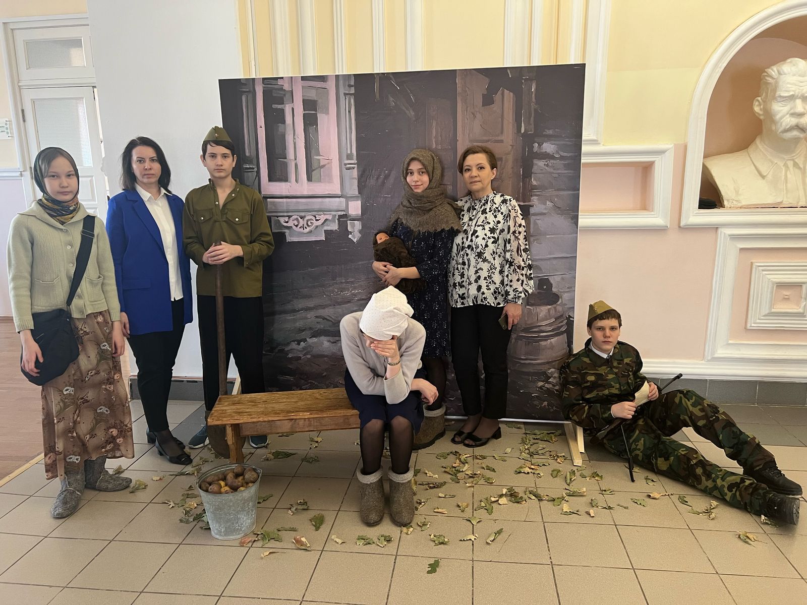 Ребята вместе со своими классными руководителями Ахмадиевой Н.Ф., Савичевой О.В., Сулеймановой Е.В., Якута Е.В., Яковлевой И.Н. и учителем начальных классов Рассказовой Е.И. показали театральные зарисовки на стихи и музыку Б. Окуджавы «Ах, война, что ж ты сделала, подлая…», стихи К. Симонова «Жди меня», картину А.И. Лактионова «Письмо с фронта».