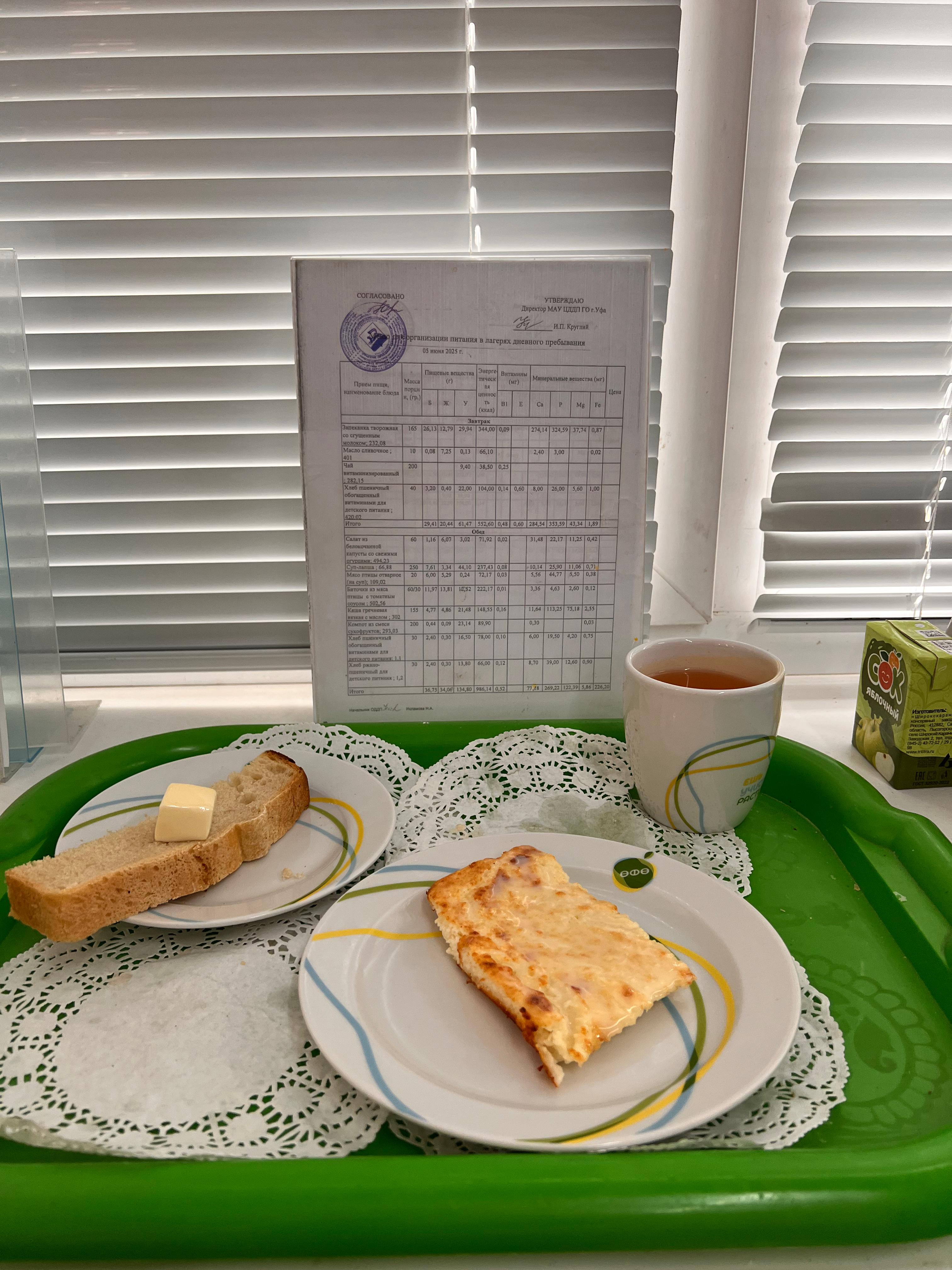Меню пришкольного лагеря на 27 мая 2025 года
