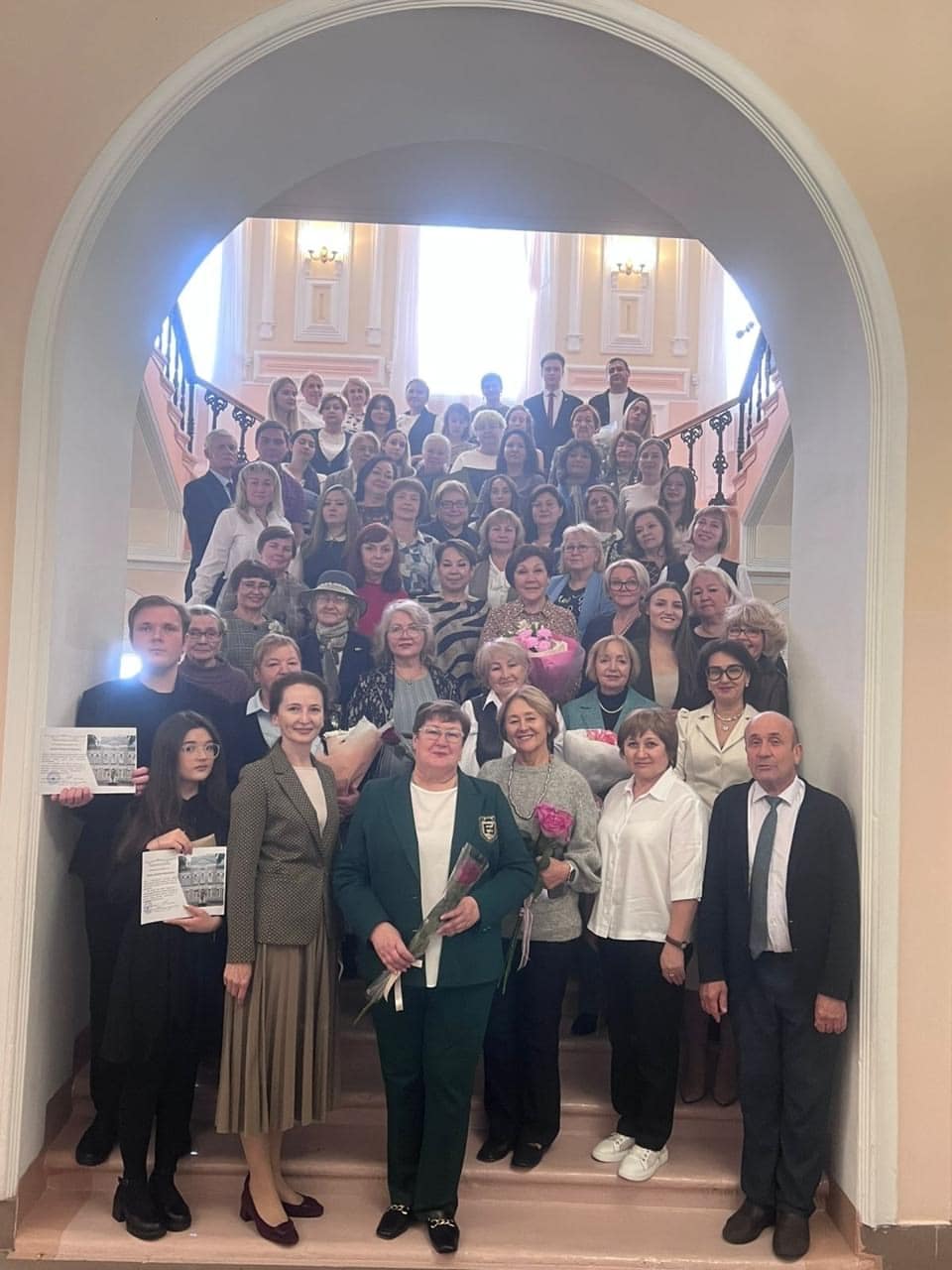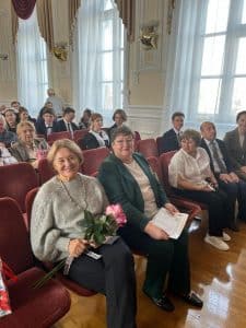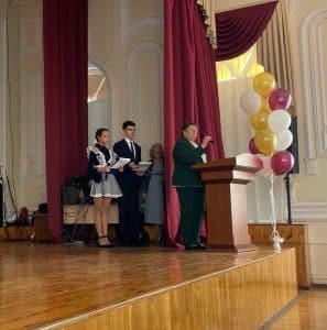 С приветственным словом выступила директор гимназии — Юлия Фёдоровна Вяткина. Поздравляя педагогический коллектив и учителей-ветеранов с профессиональным праздником, Юлия Фёдоровна отметила важность их работы в жизни каждого ученика — ведь именно учитель, передавая знания и жизненные ценности, формирует будущее общества.