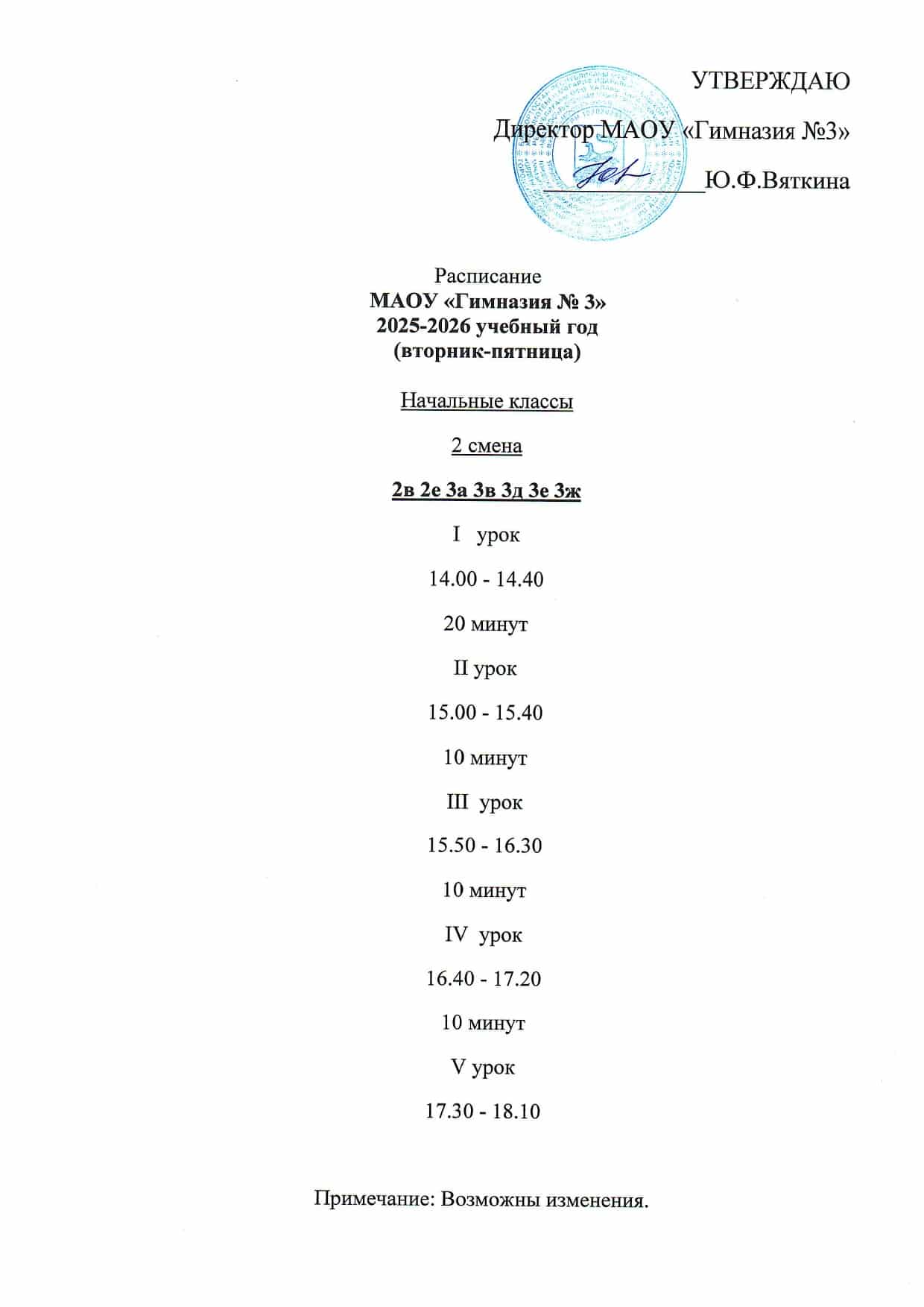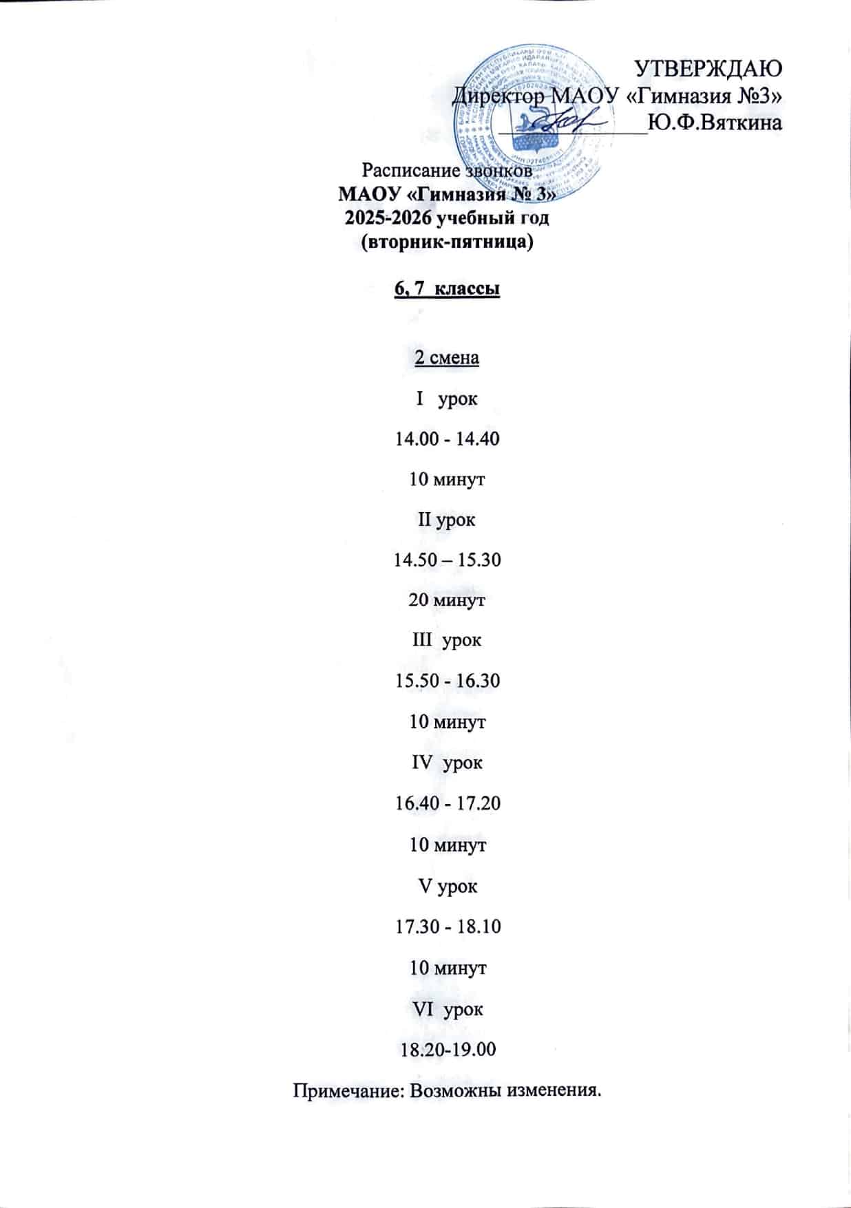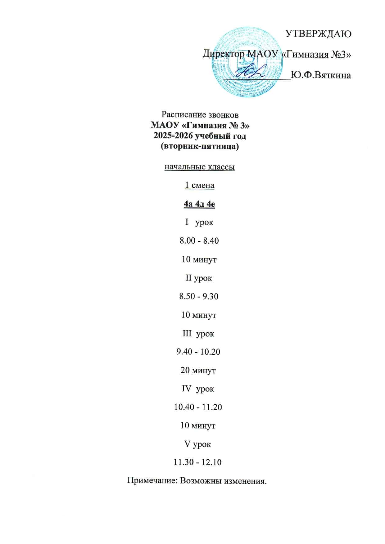 Расписание звонков МАОУ «Гимназия №3»