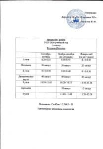 Расписание звонков 1 смена