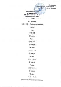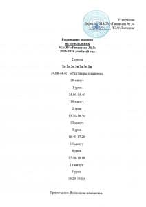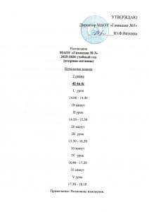 Расписание звонков 2 смена