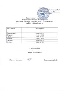Педагог-психолог Веретенникова О. В. (кабинет № 49)