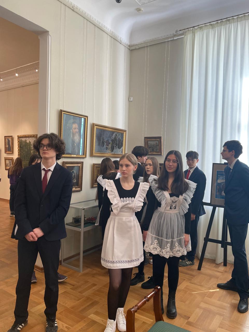 В залах музея-особняке М. А. Лаптева были собраны лучшие произведения музея: И. Айвазовского, И. Шишкина, И. Степановского, И. Репина, В. Сурикова, Н. Ге, В. Верещагина и других художников; некоторые из которых выставлены впервые. Также подробно рассказали о жизни и творчестве самого Нестерова.Ученикам было очень приятно погрузиться в искусство и узнать то, о чем нигде бы больше не рассказали! Огромная благодарность родительскому комитету и классному руководителю Труфановой Римме Тимерхановне за организацию мероприятия.